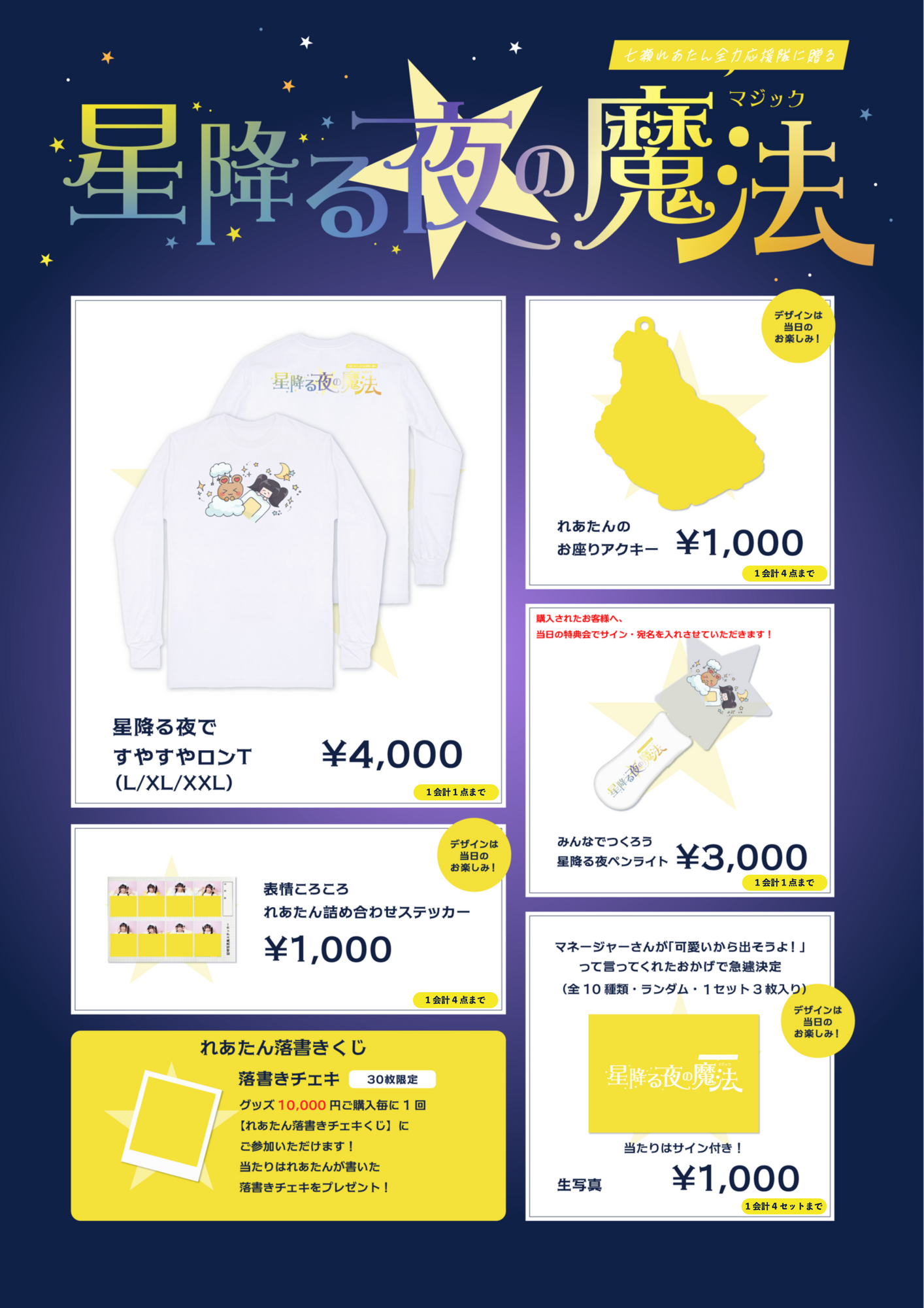 グッズ10,000円ご購入毎に1回 【れあたん落書きチェキくじ】に ご参加いただけます!当たりはれあたんが書いた落書きチェキをプレゼント!