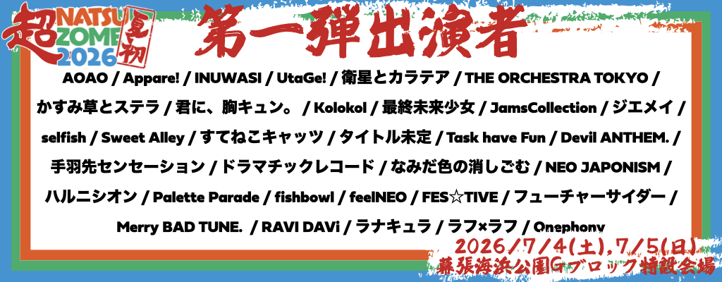 2026年7月4日(土)5日(日)幕張海浜公園Gブロック特設会場 にて行われる『超NATSUZOME 2026』への出演が決定しました!