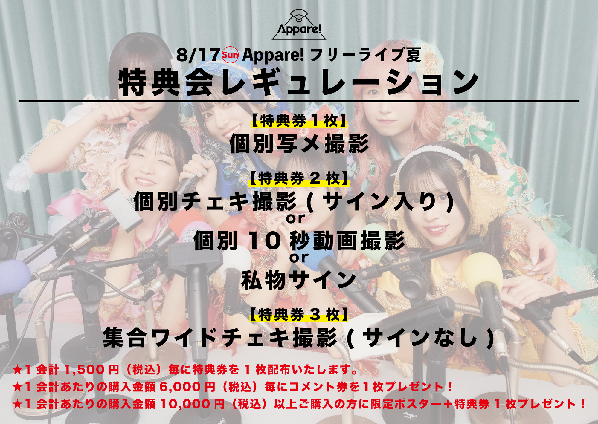 【お知らせ】2025/8/17(日)『Appare!フリーライブ夏』