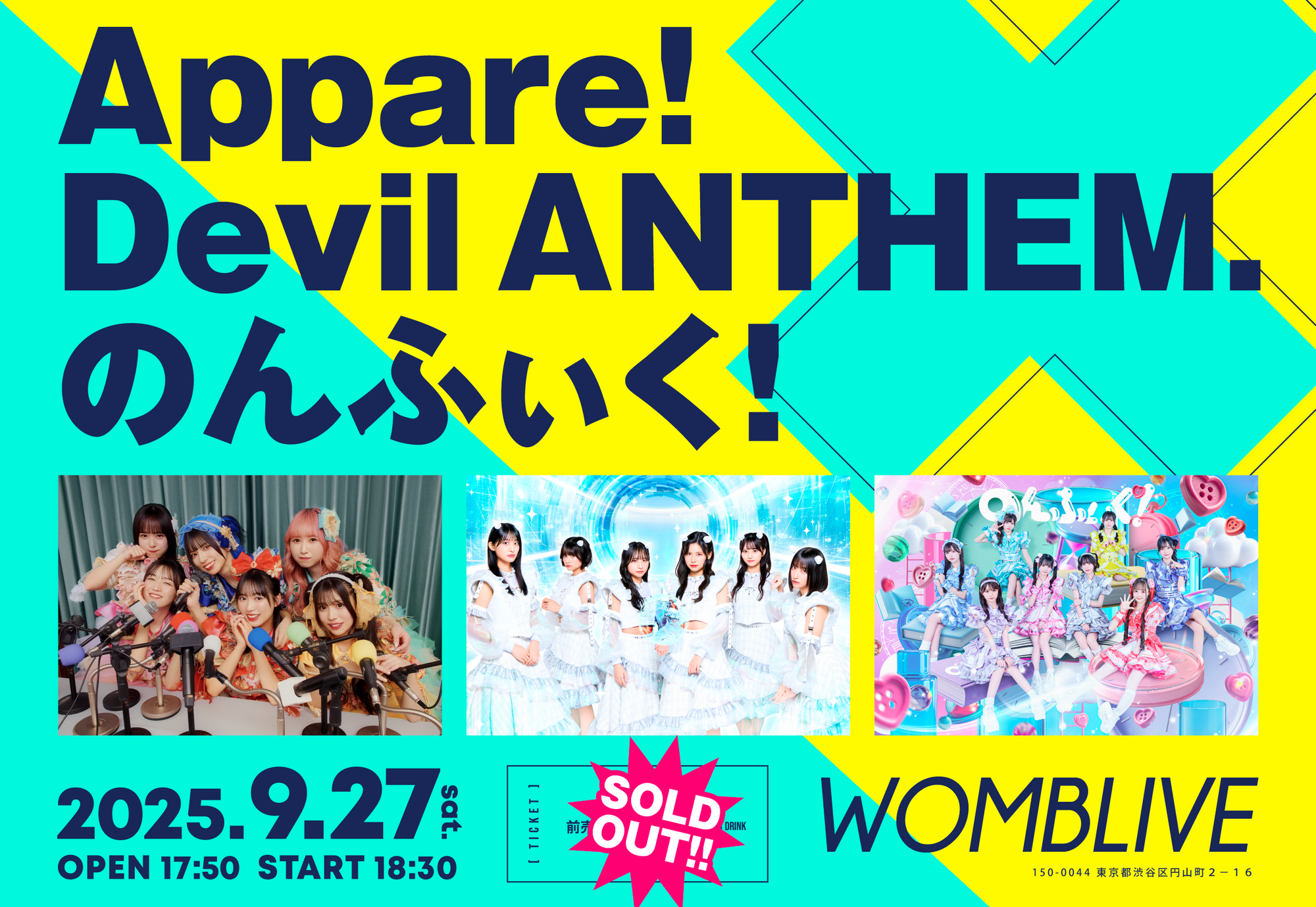 【ライブ詳細】2025/9/27(土)『Appare! × Devil ANTHEM. × のんふぃく!』
