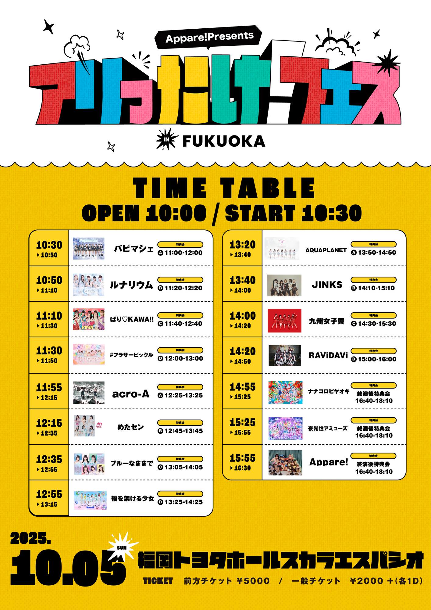 【ライブ詳細】2025/10/5(日)『Appare!Presents アリったけ!フェス inFUKUOKA』開催決定!