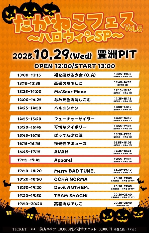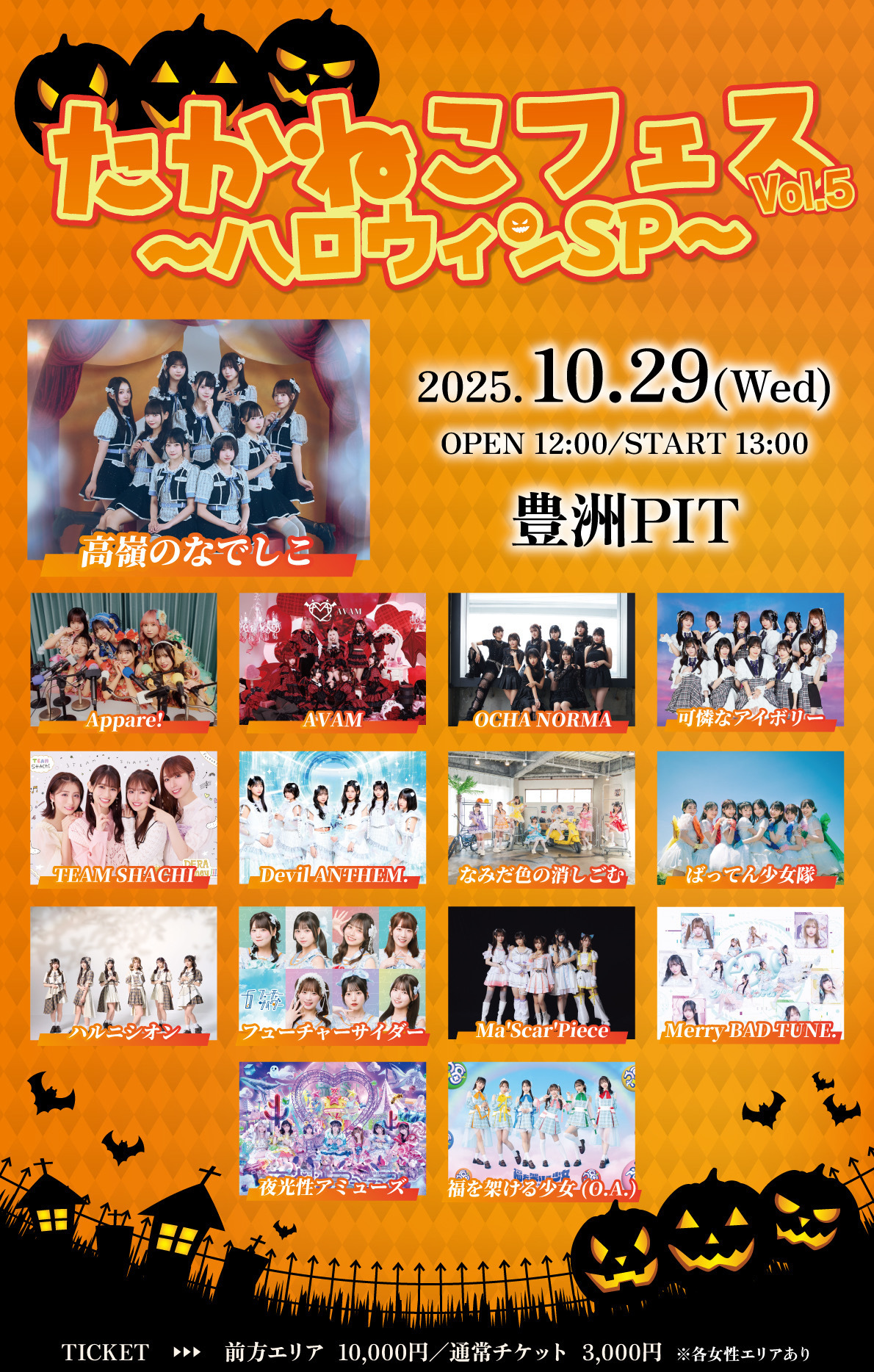 10月29日(水)豊洲PITにて行われる『たかねこフェス vol.5〜ハロウィンSP〜』の開催が決定しました!
