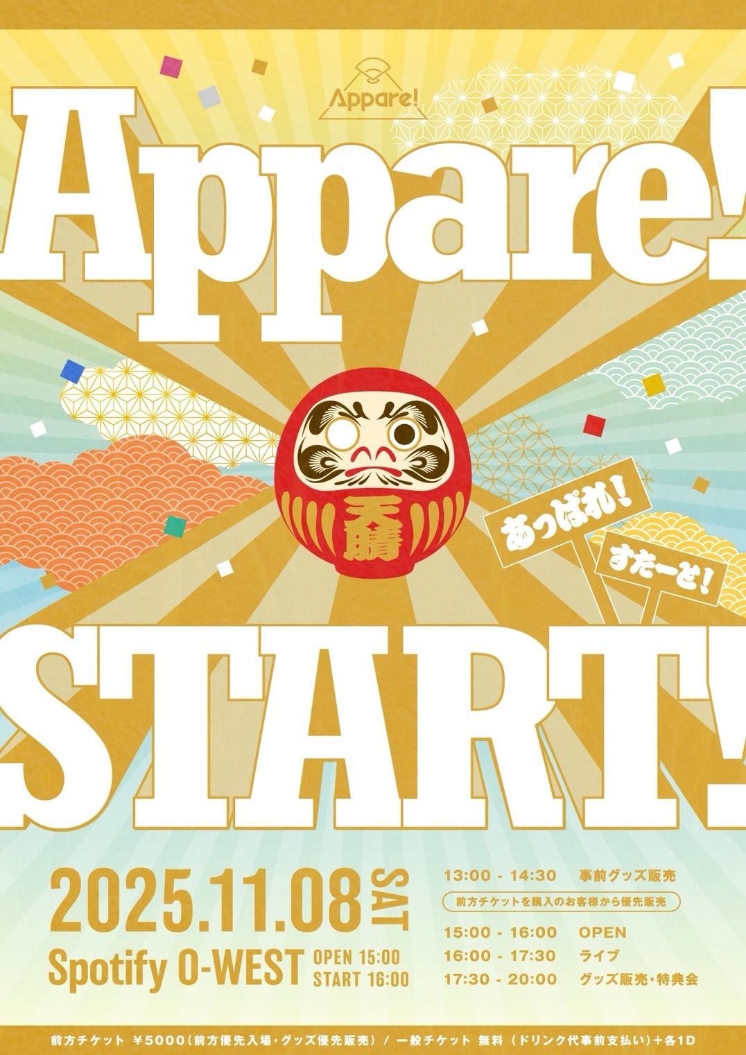 【ライブ詳細】2025/11/8(土)『Appare!START!』開催決定!