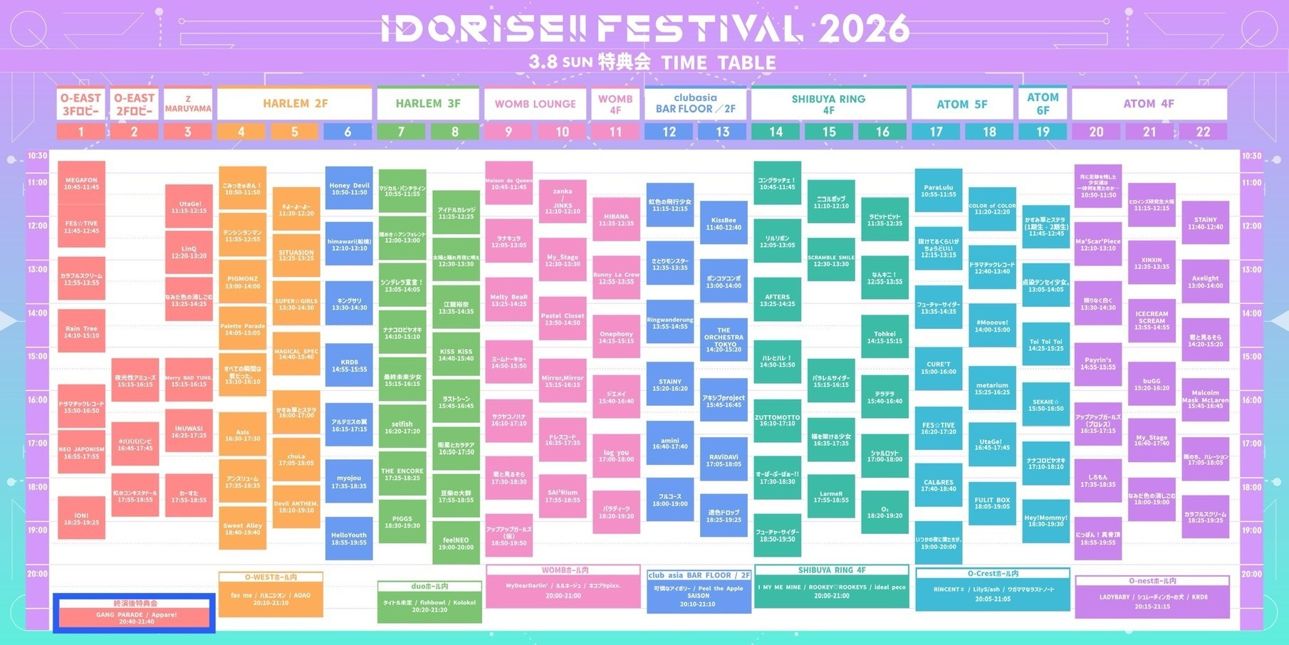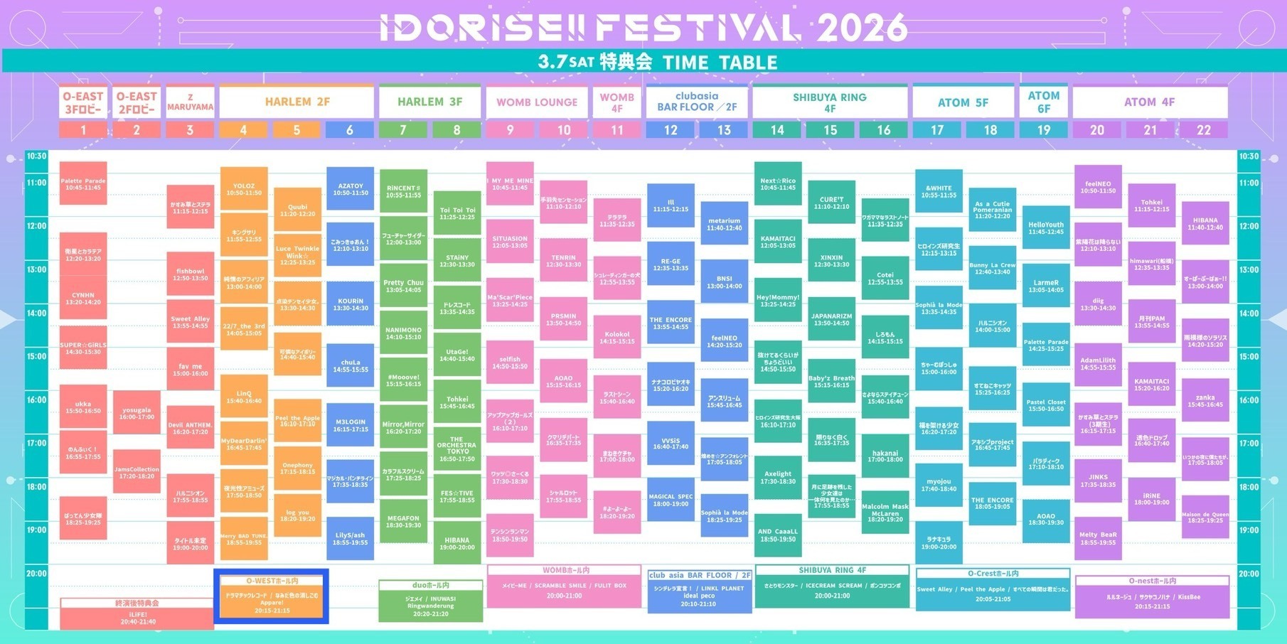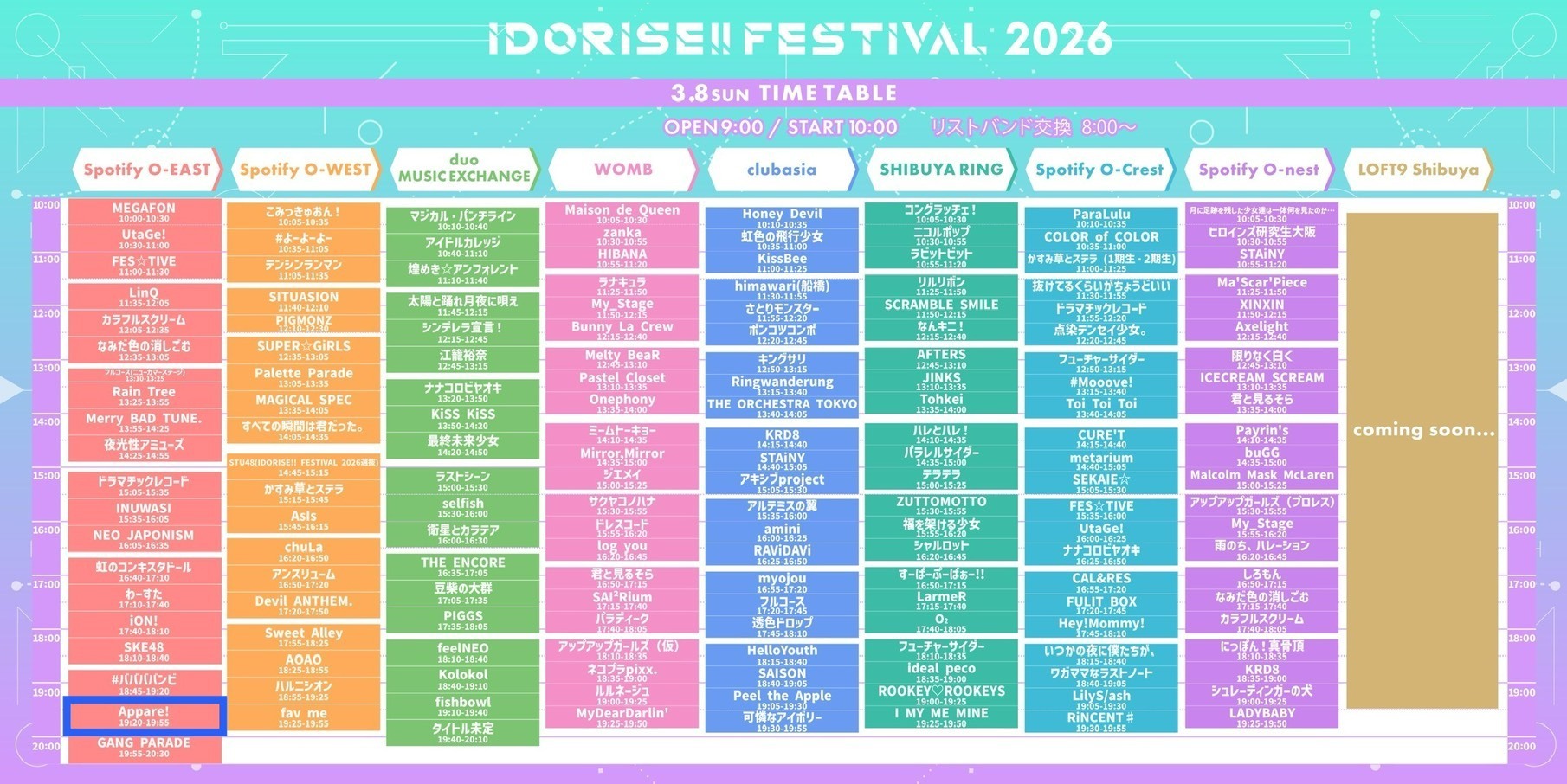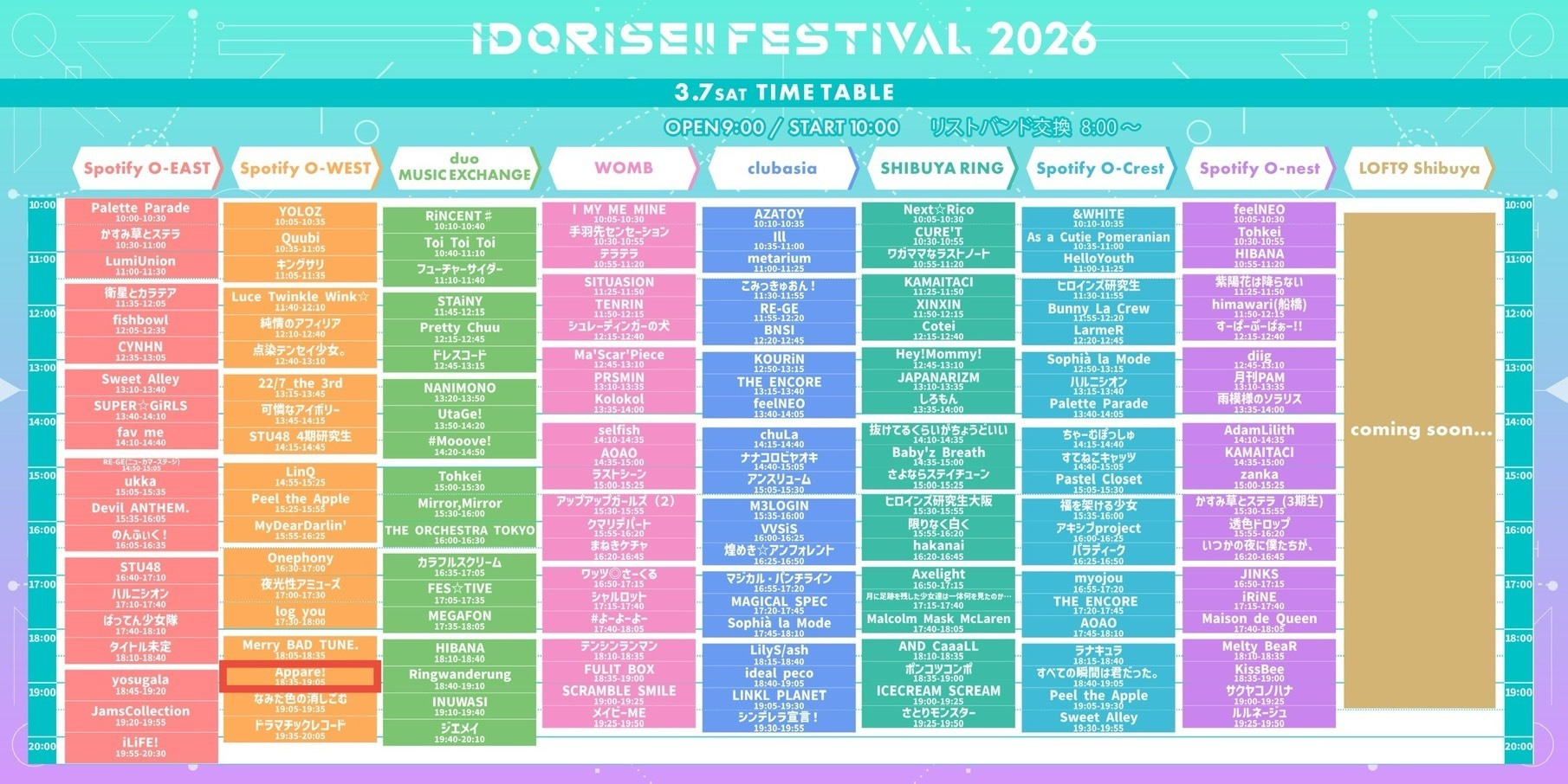 【会場】 Spotify O-EAST / Spotify O-WEST / Spotify O-nest / Spotify O-Crest / duo MUSIC EXCHANGE / WOMB LIVE / clubasia / LOFT9 Shibuya / SHIBUYA RING